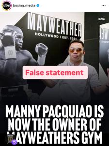 Recent coverage has created confusion among consumers, franchise partners, and media outlets by suggesting a business transaction or ownership transfer involving Manny Pacquiao and the Mayweather Boxing + Fitness brand.