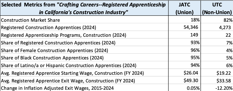 Analyzing US Department of Labor data on nearly 60,000 registered construction apprentices across 30 trades and 171 individual programs in California, Dr. Petrucci was able to identify significant distinctions between the JATC and UTC training models.